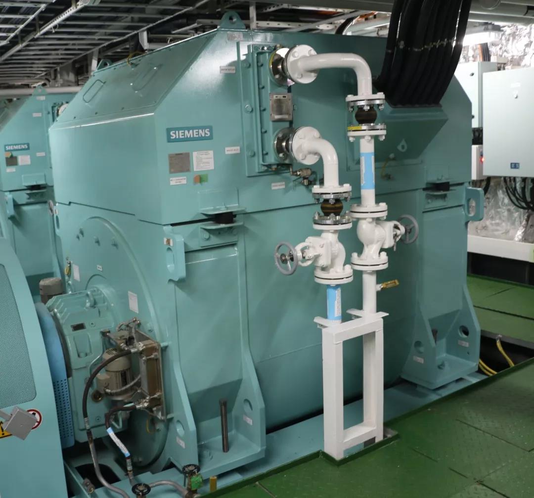 驱动电机是船上的主要噪声源之一。为了达到水下噪声标准,西门子为“东方红3”船提供了两台全球领先的静音电机——1TC系列三相感应电机。它由西门子柏林电机厂生产,采用西门子特有的定子悬浮技术,大大降低了设备运作时的噪声和振动,助力科考船成功取得SILENT-R证书。