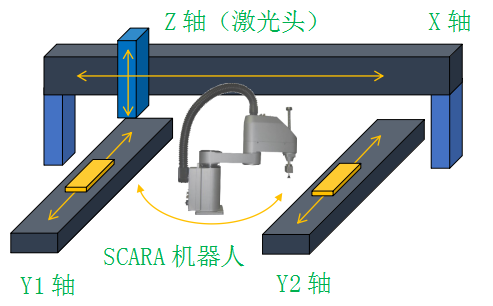 电池顶盖焊接机主要用于实现锂电池的顶盖与壳体之间的自动激光焊接。该设备主要功能包括:电池Barcode扫描、电池入夹具定位基准、焊接、焊接翻边检测判定、焊接爆点外观不良检测、焊接过程惰性气体保护、焊接飞溅物以及烟尘吸收处理、设备内部环境洁净控制、MES追溯系统等功能。顶焊机激光焊接过程需要实现自动上下料、双工位交互交替的高速度焊接工作。采用施耐德电气LMC078运动控制器和LXM32/LXM28系列伺服驱动器,基于SERCOSIII和CANopen总线,可以达到移动速度1500mm/s,焊接速度200mm/s,焊接效率10pcs/min,焊接拐角处降速<5%。