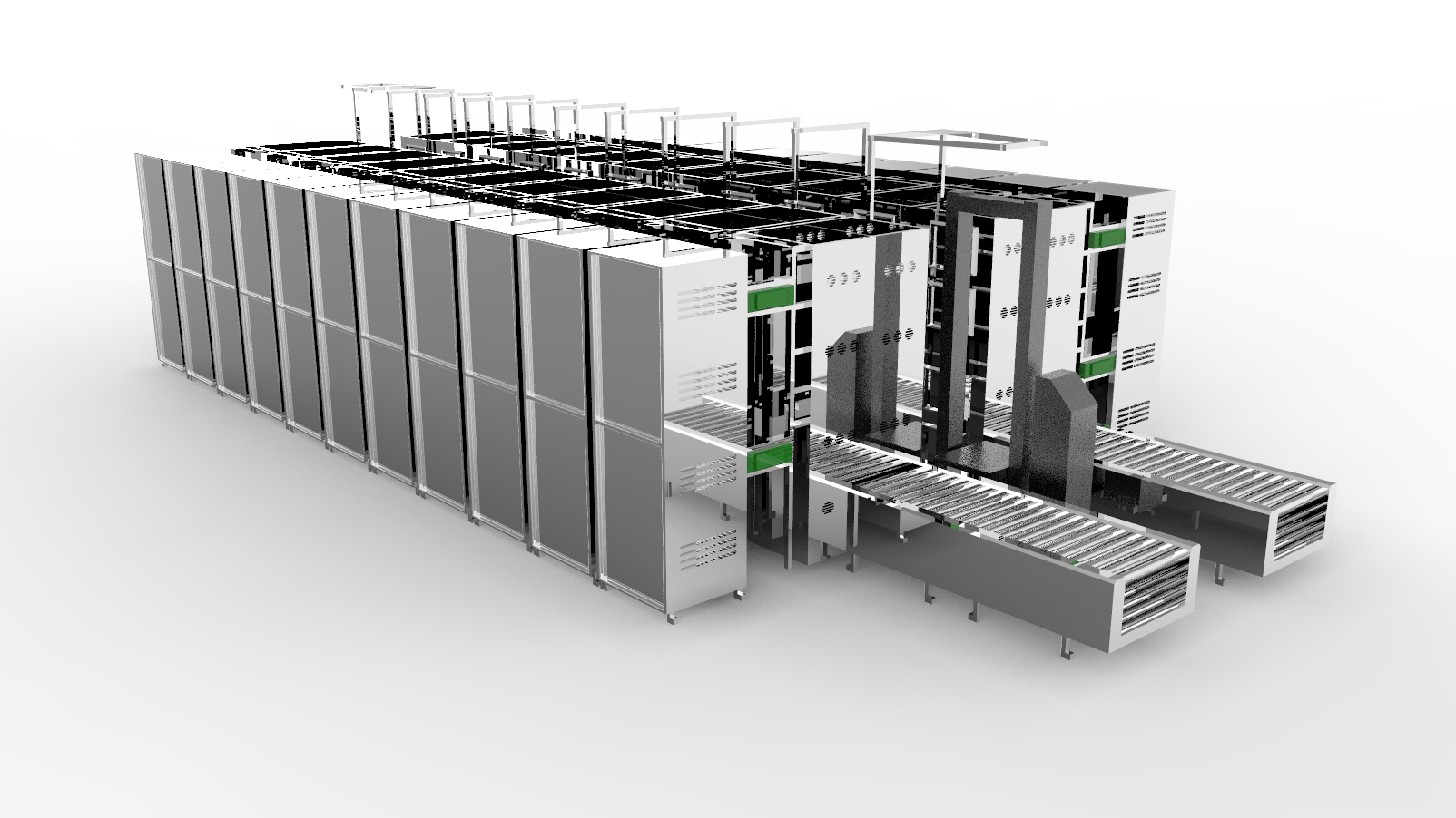 化成库将初次充电的锂电池在加温、加压的环境中进行充放电,进而达到激活电池的目的。因此,需要实现精确的压力控制(S曲线定位)、码垛机平稳取放料,以及安全保障。通过施耐德电气的高性能PLC控制器、ATV340变频器和LXM32伺服驱动,帮助减小/ 消除定位过冲,减少了20%~40%加减速时间,同时减小机械振动;控制码垛机平稳取放料达到精度±2mm,15m 以上防震(防摆)更佳,架构性能超0.5m/s2的加减速;在安全方面同时采用施耐德电气安全继电器和安全总线通讯,可以防止电流过大损伤电池组,实现 过压/欠压/断流/欠流/过温等保护功能,保护人、设备和电池产品。